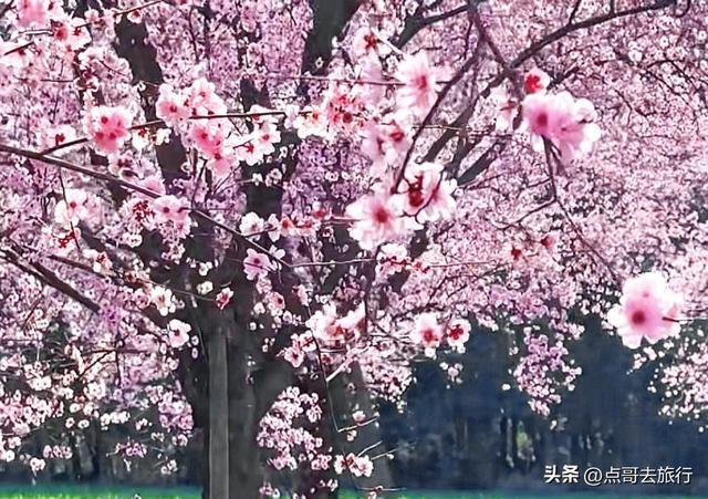 戚家湾的美人梅,是这个春天最惊艳的主角。它不是零星的几棵树,而是一大片,虽没有铺天盖地的震撼,却很精美。美人梅一棵挨着一棵,层层叠叠的花枝肆意舒展,粉粉嫩嫩的花瓣缀满枝头,没有一片叶子,全是花,像天边落下的云霞;树下是绿绿的草地,两相映衬,更显春意盎然。美人梅我是第一次听说,通过查询了解,美人梅是梅花和紫叶兰的结合,既有梅花的清雅风骨,又有桃李的柔媚娇艳。花瓣层层叠叠,粉得刚好,不是那种艳俗的粉,是带点透明感的、柔柔嫩嫩的粉,走在树下,满身都是温柔的花香。