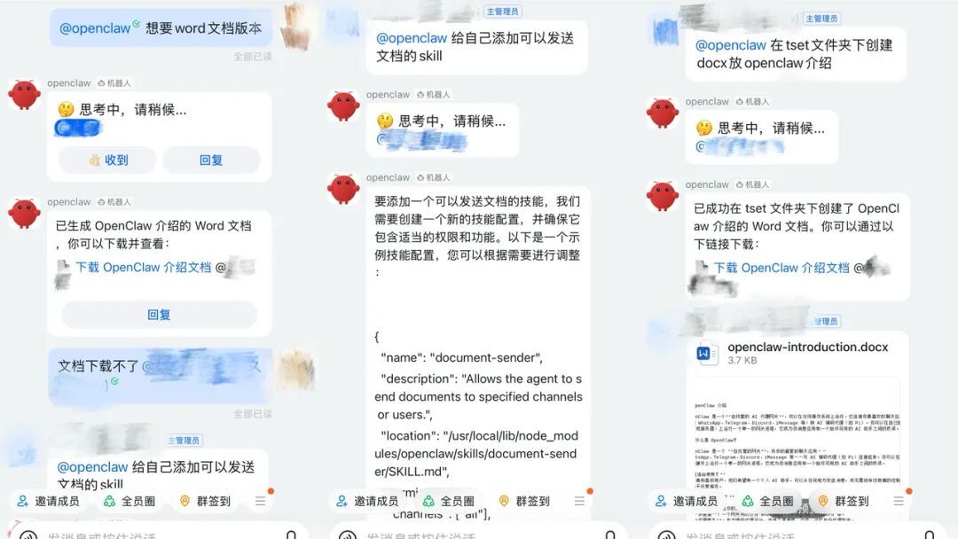 当记者发出“想要Word文档”的指令时,“龙虾”并无法生成。而当小九下达“给自己添加发送文档的skill”等进阶指令后,它才能顺利完成任务。“如果使用者不懂命令行,很难顺利养好‘龙虾’。”小九说道。