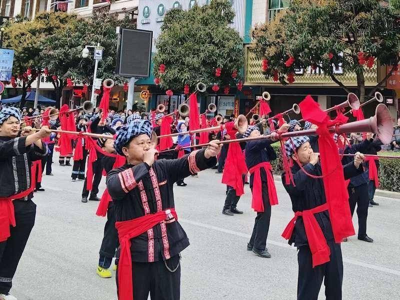 望谟2025“三月三”活动现场吹响长号。陈湘飚摄