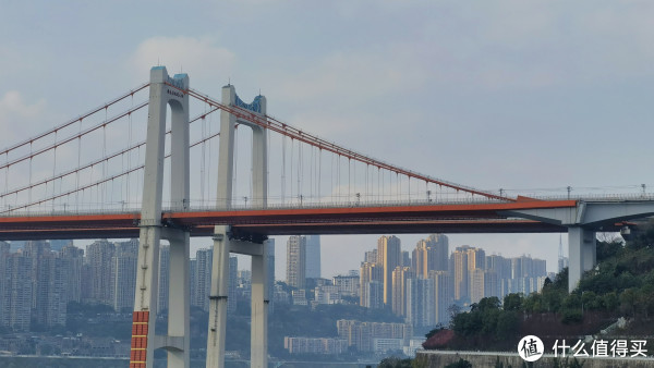 长在广场上就能远眺鹅公岩大桥。公路和轨道复线桥。是不是还有环线轨道从桥上驶过。光线好找到九龙坡的高楼闪闪金光,应该也算一个出片地方。
